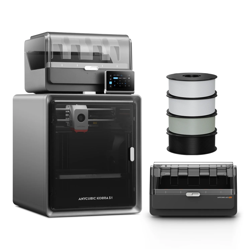 Anycubic Kobra S1 Combo là bộ sản phẩm bao gồm máy in 3D CoreXY tốc độ cao Kobra S1 và hệ thống quản lý nhựa thông minh ACE 2 Pro. Đây là giải pháp toàn diện cho phép người dùng in đa màu, sấy nhựa chủ động và xử lý các loại vật liệu kỹ thuật cao cấp một cách dễ dàng.